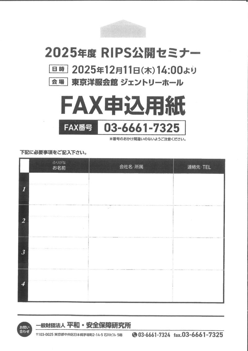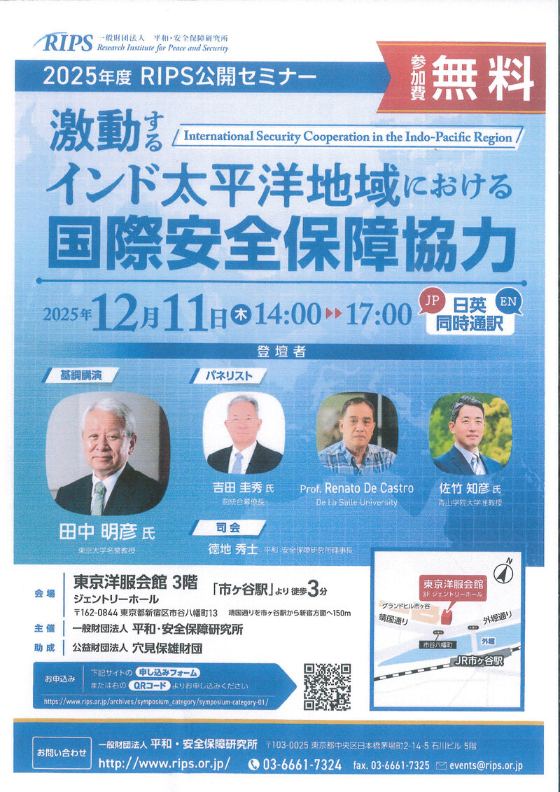 2025年12月11日 2025年度RIPS公開セミナー(激動するインド太平洋地域における国際安全保障協力)のご案内(添付資料)
